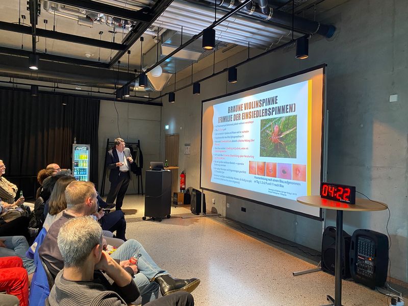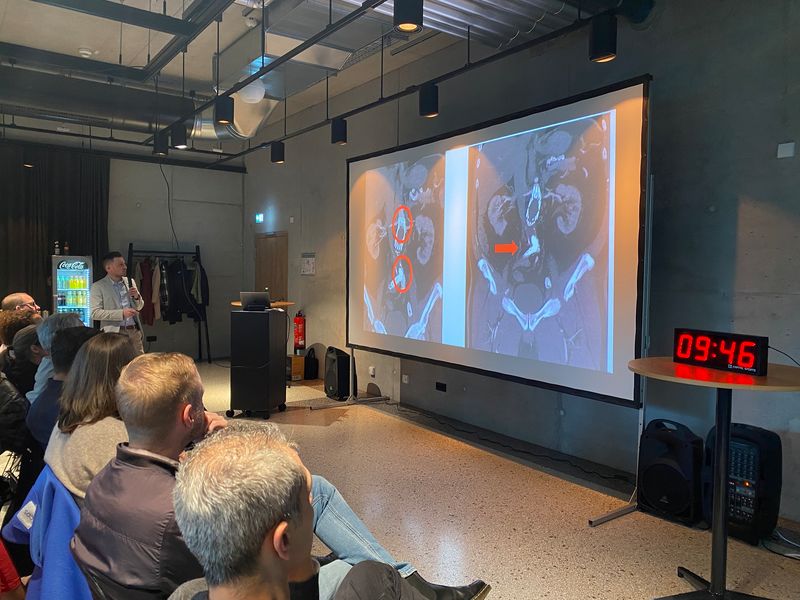Der regelmäßig stattfindende AngioSlam.berlin bietet den Rahmen für einen kollegialen und konstruktiven Austausch über spannende gefäßmedizinische Fälle. Thematisch sind keine Einschränkungen vorgegeben: neben endovaskulären Fällen sind auch unkonventionelle Fallbeispiele, Kolibris und Komplikationen aus dem gesamten Spektrum der Gefäßmedizin willkommen. Die Präsentationen werden nach der Vorstellung interaktiv diskutiert und abschließend werden die besten Fallvorstellungen von dem Auditorium prämiert.